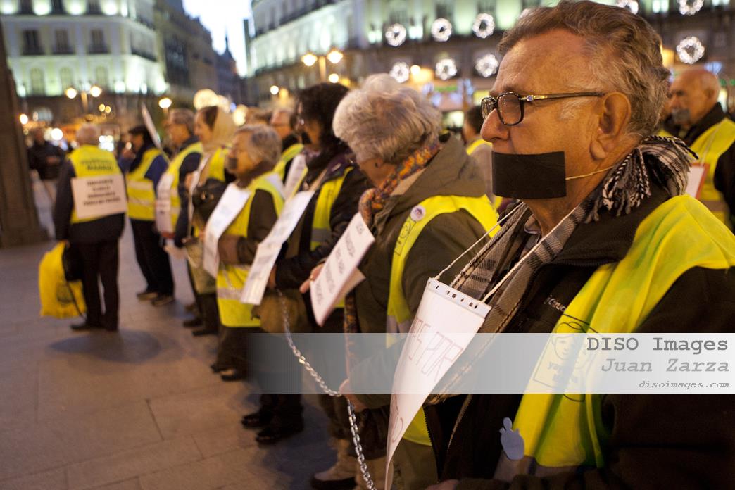 Protesta de Yayoflautas en Sol contra la ley anti 15M