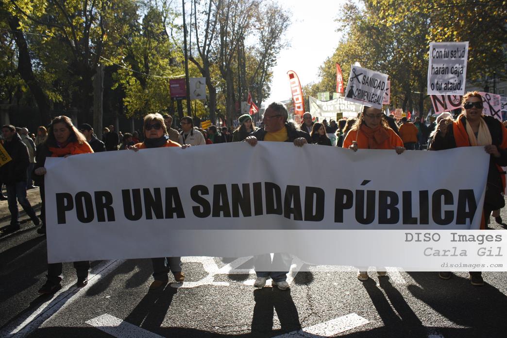 Las Mareas Blanca, Verde y Roja han marchado juntas desde Atocha a Sol, el 15 de diciembre de 2013, para defender lo público